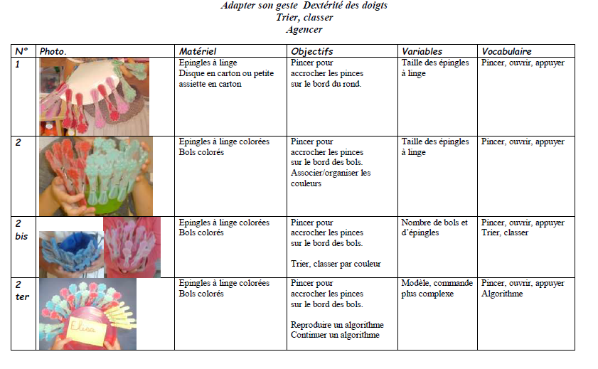 - des rangements permettant tris et classements sont encouragés et validés lors du bilan;